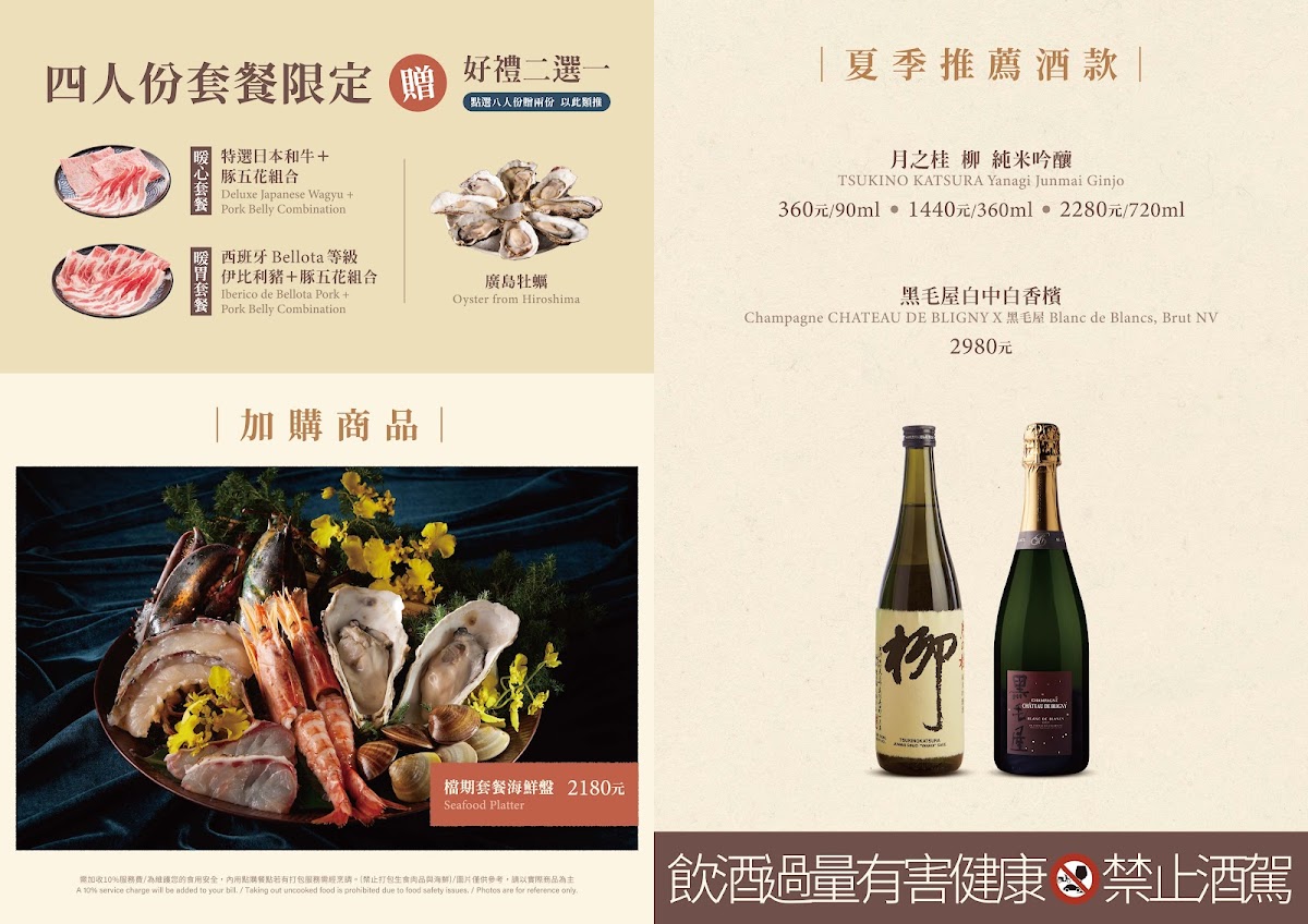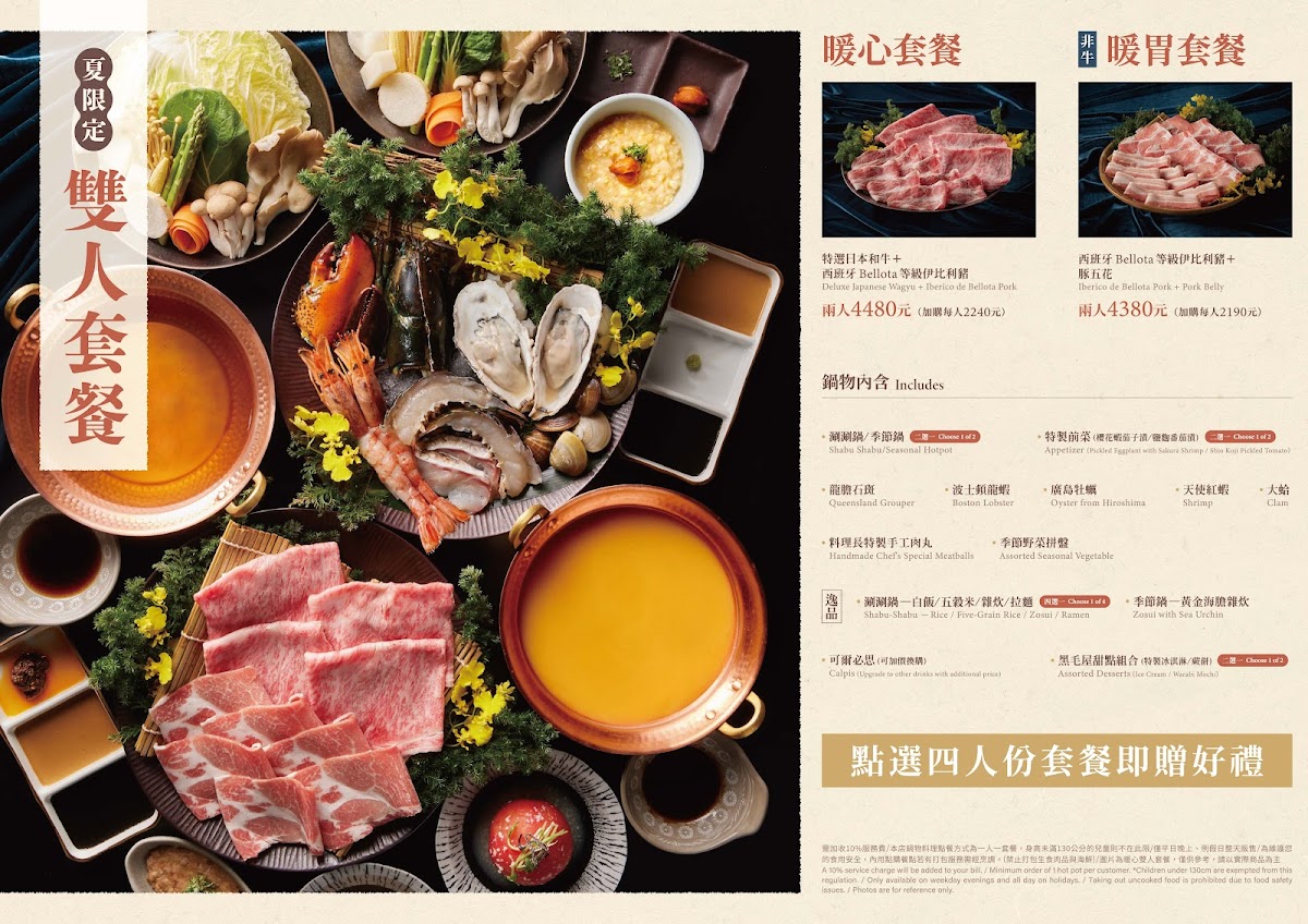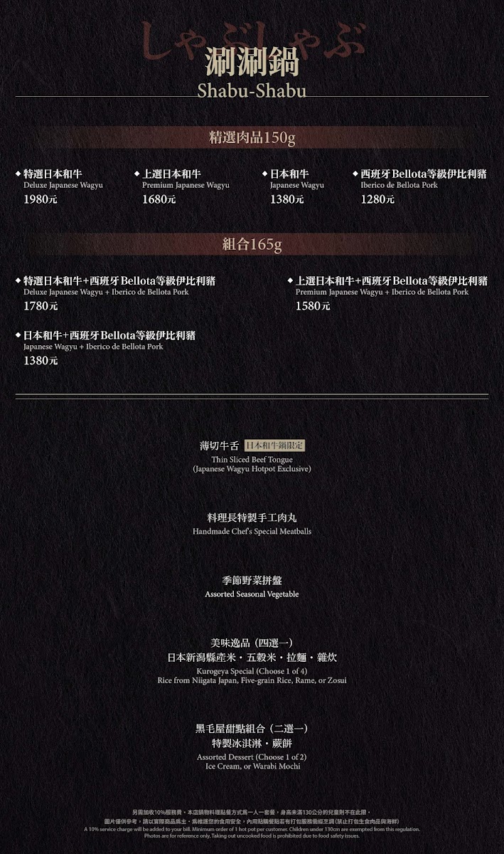 Viewed as a whole, the menu at Kurogeya Honke feels carefully curated to highlight comforting Japanese hot pot traditions while still offering enough variety to keep the dining experience engaging from start to finish. The centerpiece is clearly the 特選日本和牛涮涮鍋, where the quality of the wagyu stands out for its tenderness and rich flavor, setting a luxurious tone for the meal. Seafood lovers are equally well served with Lobster Shabu-Shabu, which adds a sweet, ocean-fresh contrast to the beef-focused selections. After the main hot pot experience, the transition into rice-based finales like 雜炊 and the more indulgent Zosui with Fresh Black Truffle and Cheese feels natural and satisfying, turning the remaining broth into something deeply savory and aromatic. Supporting dishes such as 燉煮牛舌, 肉丸, and 烤年糕 round out the menu with hearty textures and familiar comfort, while Motsunabe Sauce adds an extra layer of depth for those who enjoy bolder flavors. Dessert options provide a gentle, sweet close to the meal, ranging from the light and refreshing 甜點 草莓冰淇淋 to richer choices like 水果巧克力蛋糕 and 巧克力布朗尼, ensuring there is something for every palate. To accompany everything, a chilled Asahi Beer works well to balance the richness of the food. Overall, the menu feels cohesive and thoughtfully structured, emphasizing quality ingredients and a smooth progression from main dishes to comforting finales and desserts.